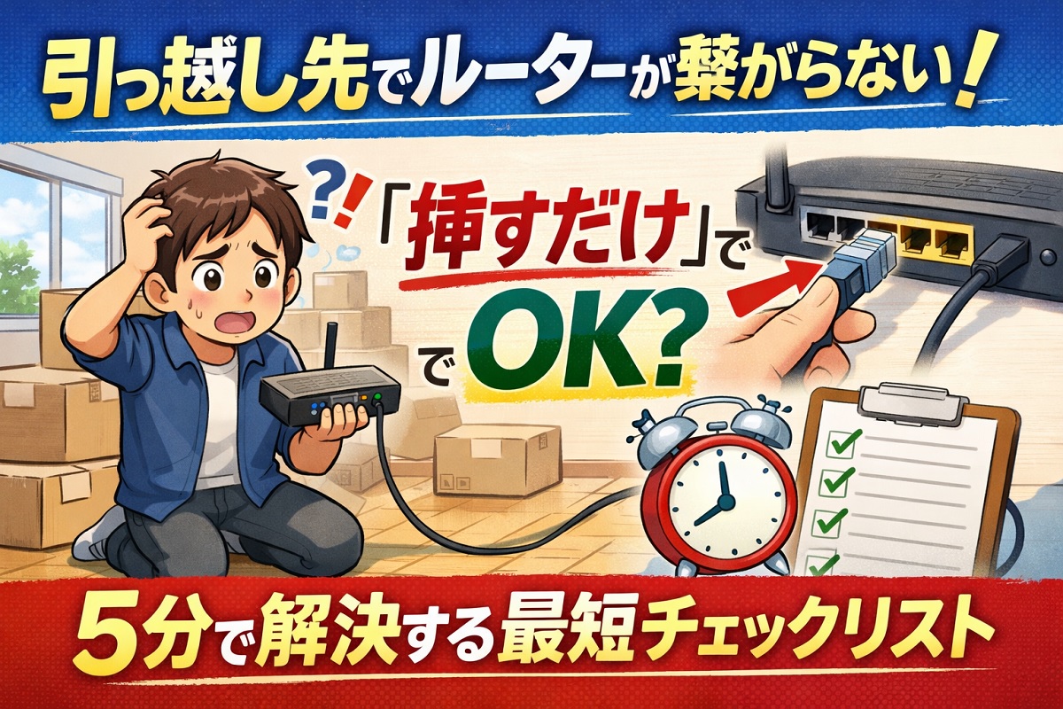 引っ越し先でルーターが繋がらない原因のほとんどは、故障ではなく「設定の不一致」です。