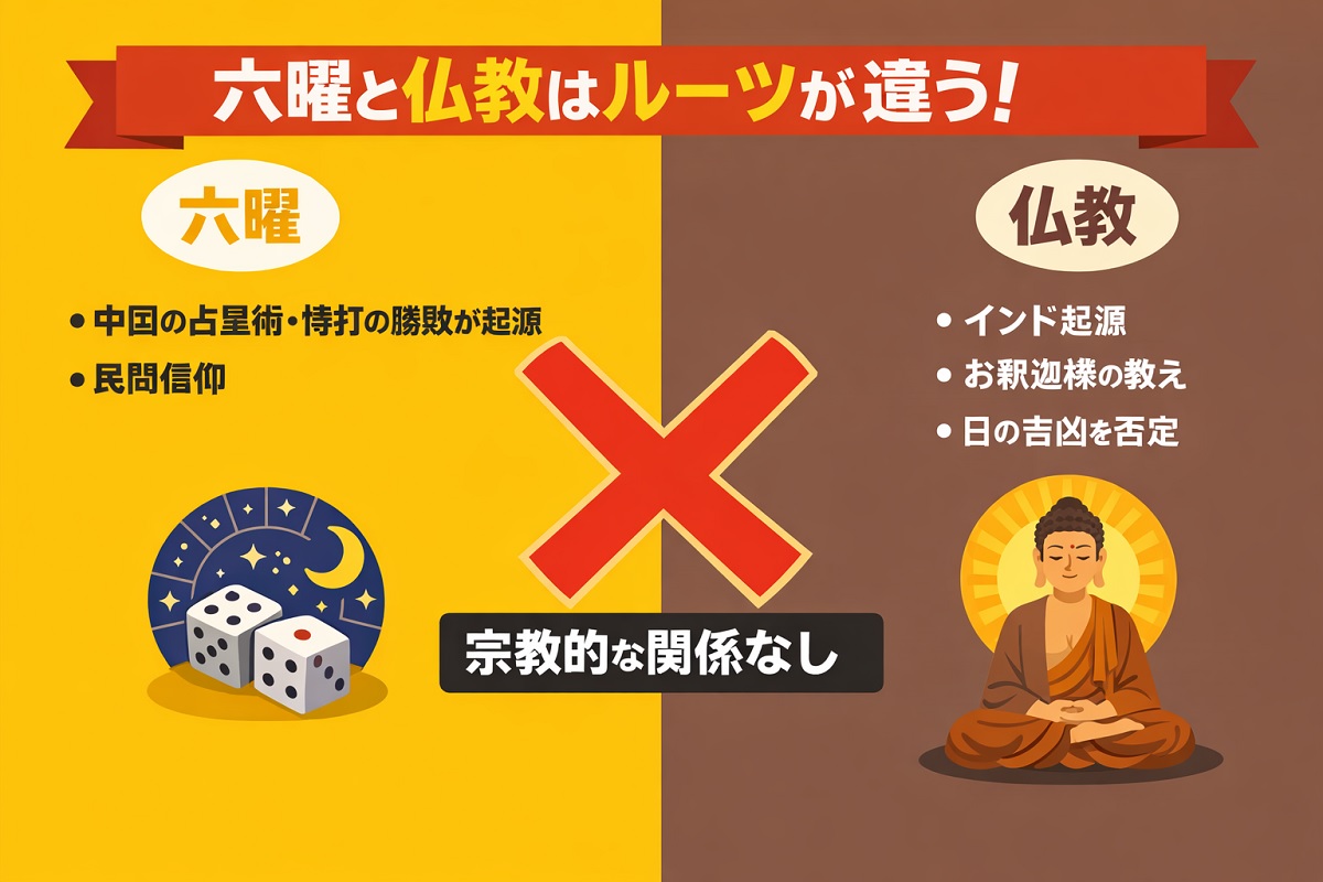 多くの人が誤解していますが、六曜(大安・仏滅など)と仏教には宗教的なつながりは一切ありません。