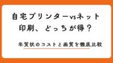 - 自宅プリンターで印刷すると、写真が暗く沈んでしまいがちです。写真にこだわるなら、ネット印刷の「銀塩プリント(写真仕上げ)」を選びましょう。画質が良いだけで「きちんとした年賀状」に見えます。